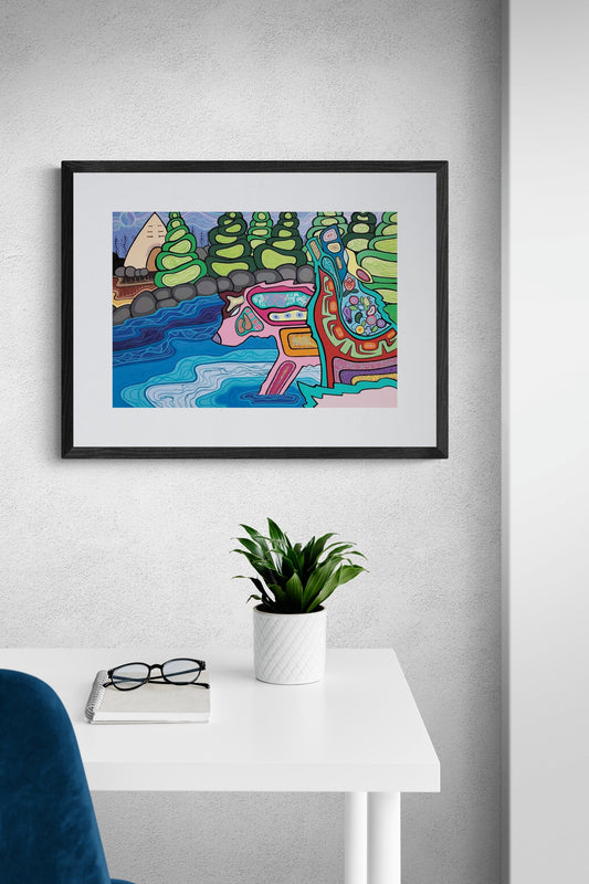 A Bear’s Journey By Carla Joseph, Indigenous Art Print, First Nations, Native Americans, Cree, Métis, Framed Art