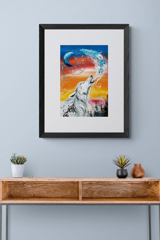 Alpha by Donna Langhorne Indigenous Art Print, First Nations, Anishinaabe Nation, Native Americans Decor, Wolf Framed Art