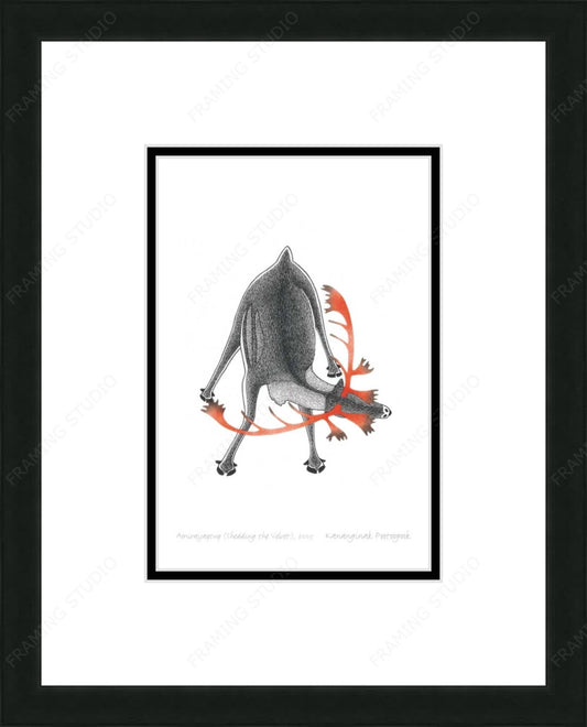 Amiraijaqtuq (Shedding The Velvet) by Kananginak Pootoogook, Indigenous Art Card, Inuit Framed Art Card