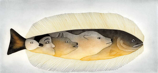 Amauliq At Sea, 1984 by Kananginak Pootoogook, Indigenous Art Card, Inuit Framed Art Card