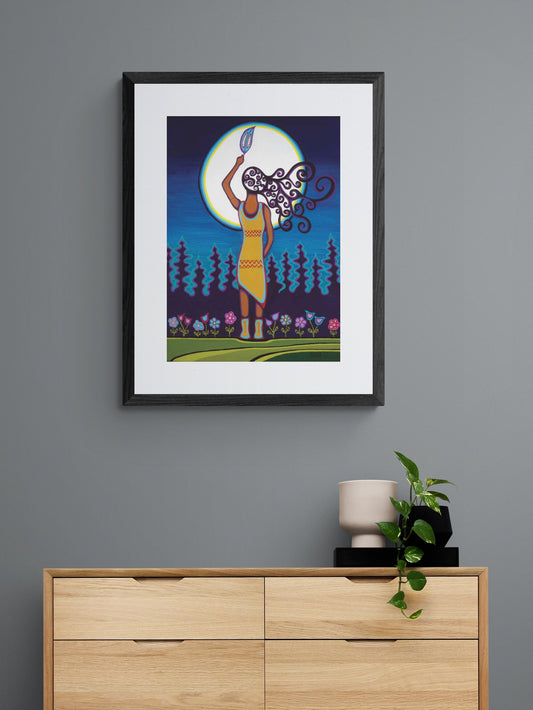 Woman In Yellow Light by Alan Syliboy, Indigenous Art Card, Framed Art Card, Mi’kmaq Artist