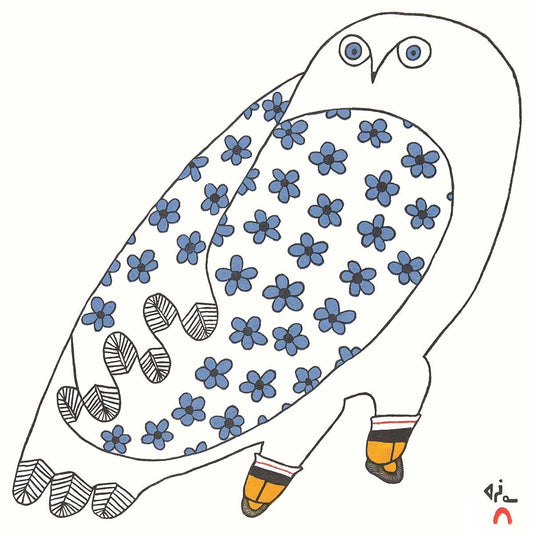 Blossoming Owl by Ningiukulu Teevee,, Indigenous Art Card, Inuit Framed Art Card