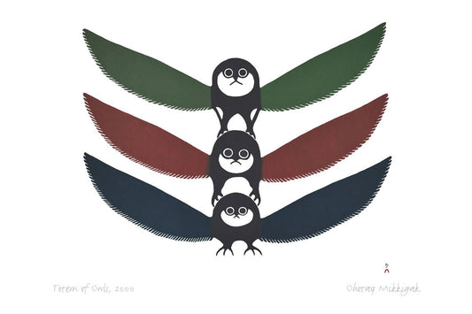 Totem Of Owls, 2000 by Ohotaq Mikkigak, Indigenous Art Card, Inuit Framed Art Card