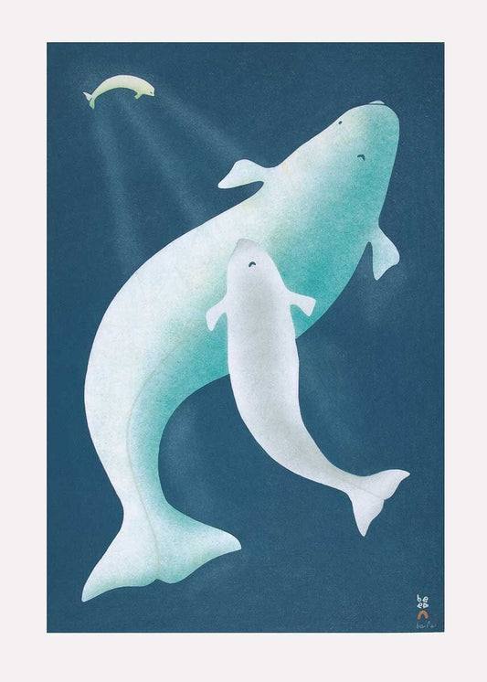Whales Sounding by Kananginak Pootoogook, Indigenous Art Card, Inuit Framed Art Card