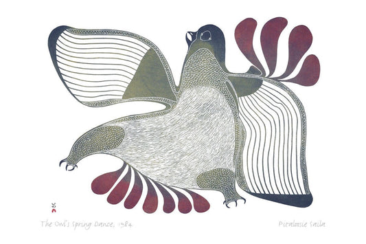 The Owl’s Spring Dance, 1984 by Pitaloosie Saila, Inuit Art Card, Framed Art Card