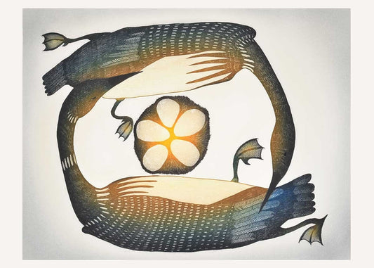 Arctic Seals, 2008 by Kananginak Pootoogook, Indigenous Art Card, Inuit Framed Art Card