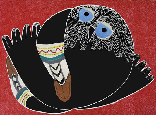 Summer Owl, 1972 by Kananginak Pootoogook, Indigenous Art Card, Inuit Framed Art Card