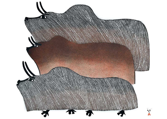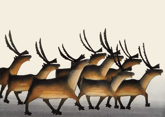 Steadfast Herd by Kananginak Pootoogook, Indigenous Art Card, Inuit Framed Art Card