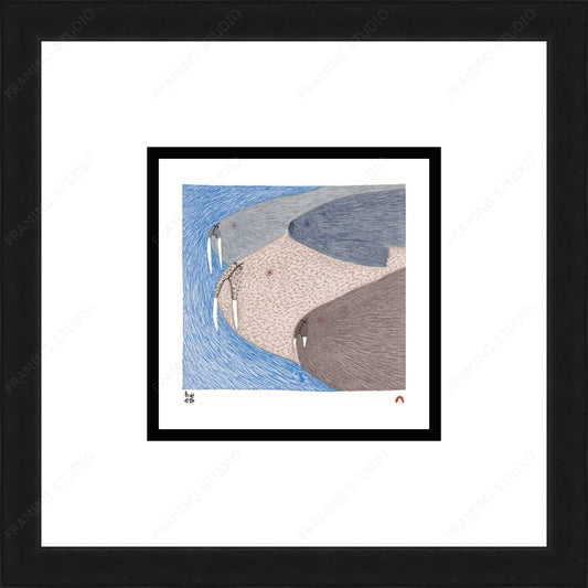 Swimming Walrus by Ningiukulu Teevee,, Indigenous Art Card, Inuit Framed Art Card