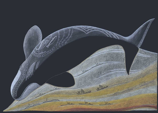 Tattooed Whale, 2016 by Tim Pitsiulak, Inuit Art Card, Framed Art Card