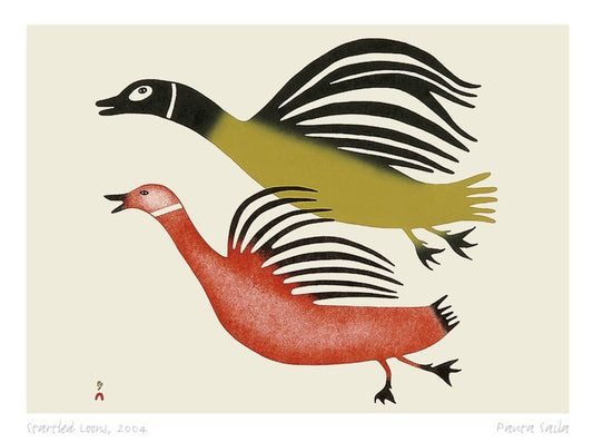Startled Loons, 2004 by Pauta Saila, Inuit Art Card, Framed Art Card