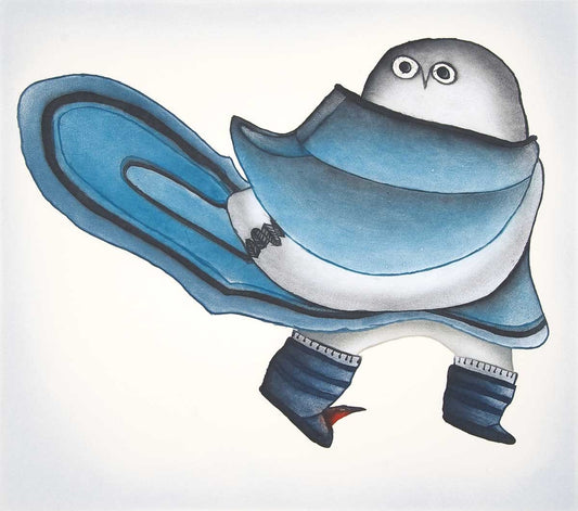 Owl In Amauti by Ningiukulu Teevee,, Indigenous Art Card, Inuit Framed Art Card