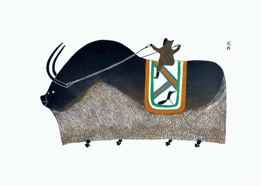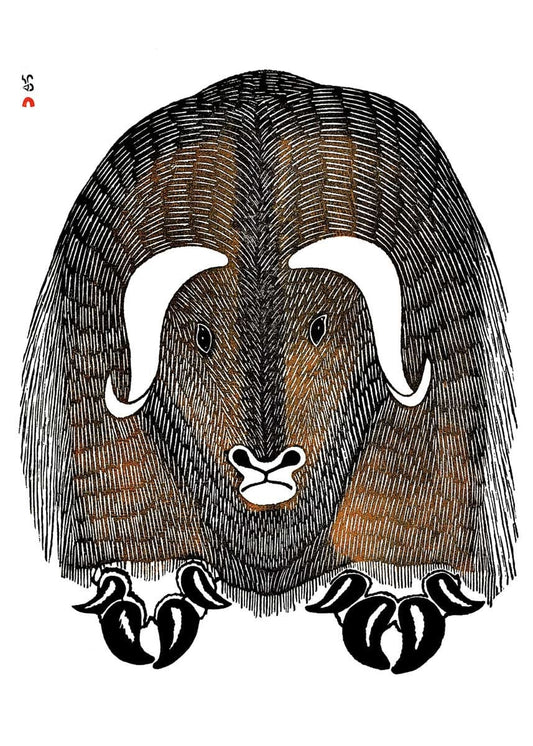 Omingmungjuaq (Humongous Musk Ox), 1977 by Kananginak Pootoogook, Indigenous Art Card, Inuit Framed Art Card