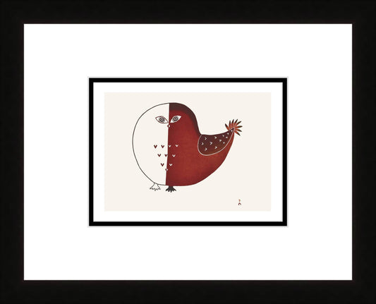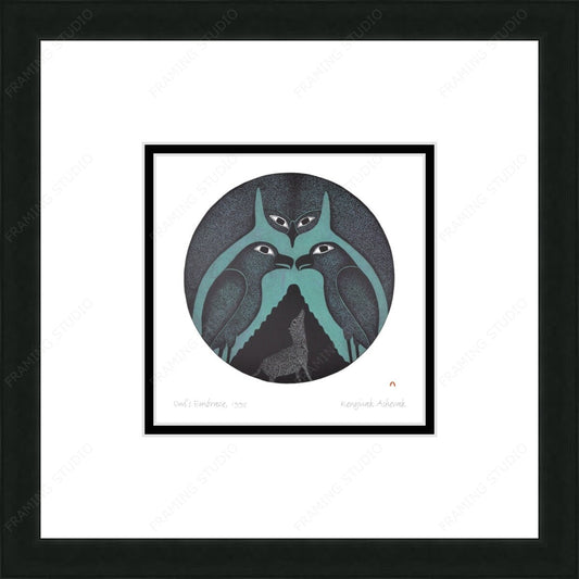 Owl’s Embrace, 1995 by Kenojuak Ashevak, Indigenous Inuit Art Card, Aboriginal Decor, Framed Art Card