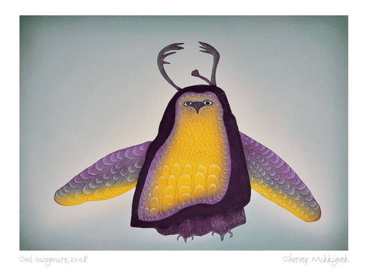 Owl Incognito,2008 by Ohotaq Mikkigak, Inuit Art Card, Framed Art Card