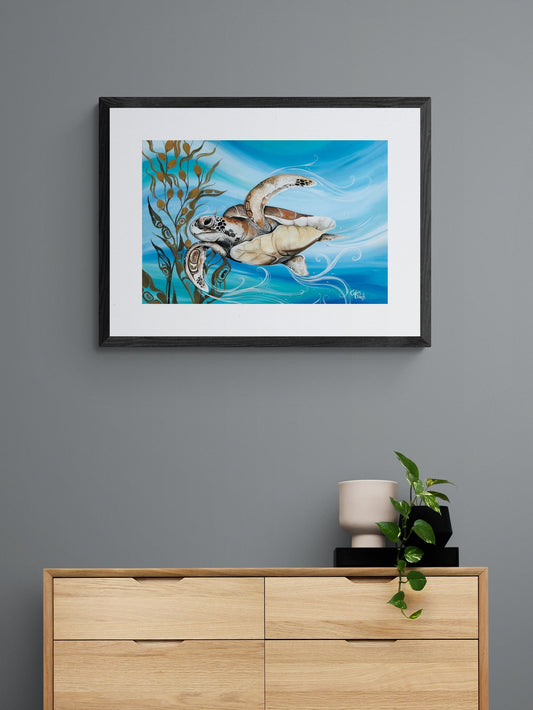 Grand Sea Turtle By Carla Joseph, Indigenous Art Print, First Nations, Native Americans, Cree, Métis, Framed Art