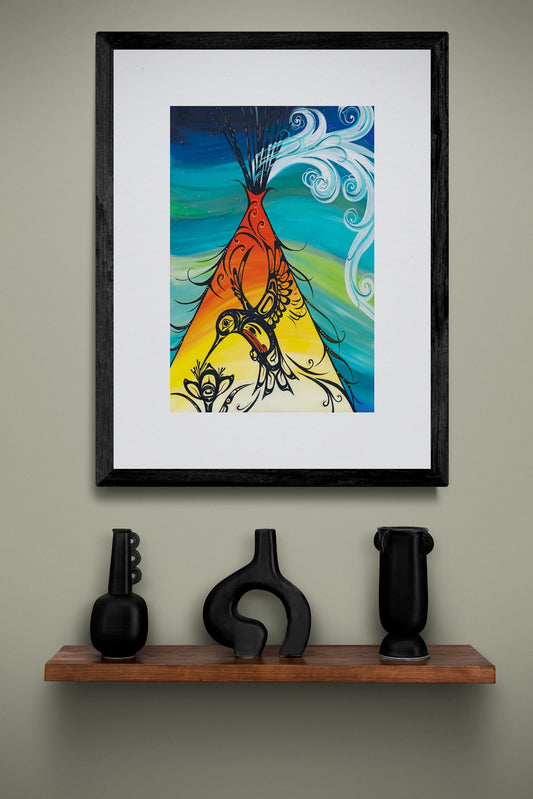 Hummingbird Teepee By Carla Joseph, Indigenous Art Print, First Nations, Native Americans, Framed Art