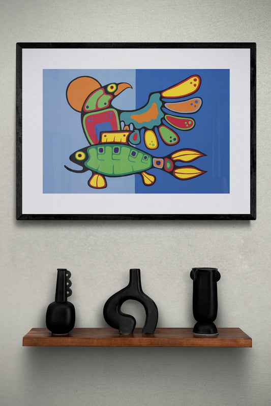 Birds And Fish by Jim Oskineegish Indigenous Art Print, First Nations, Ahnisnabae Culture, Native American Indian Decor