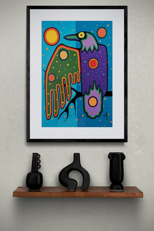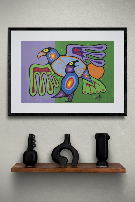 Bird Resting by Jim Oskineegish Indigenous Art Print, First Nations, Ahnisnabae Culture, Native American Indian Decor