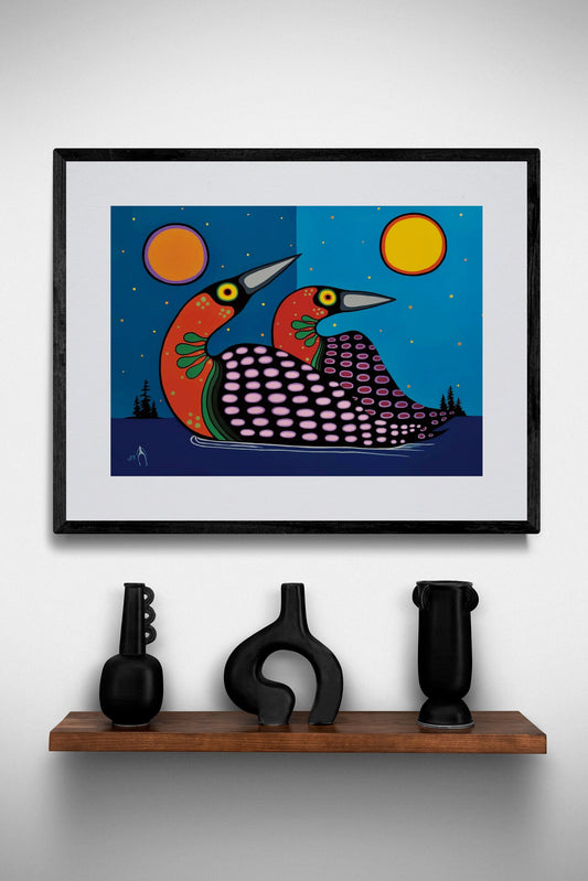 Loons by Jim Oskineegish Indigenous Art Print, First Nations, Ahnisnabae Culture, Native American Indian Decor