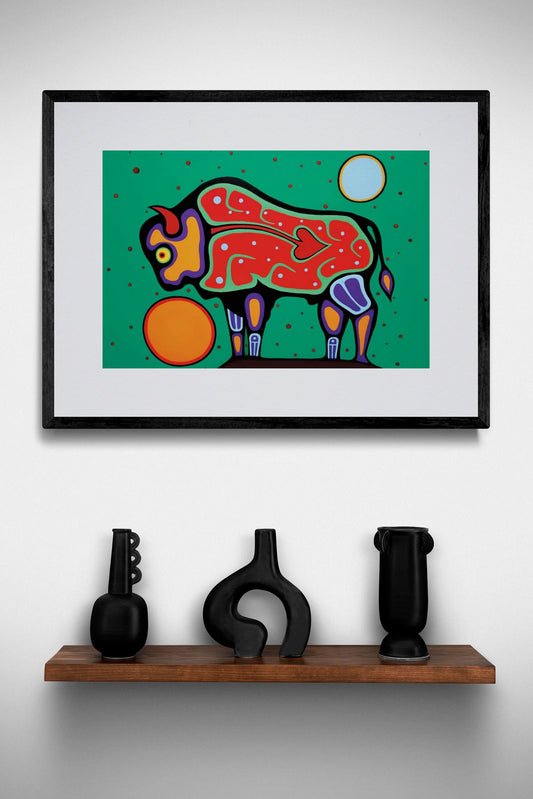 Bison by Jim Oskineegish Indigenous Art Print, First Nations, Ahnisnabae Culture, Native American Indian Decor
