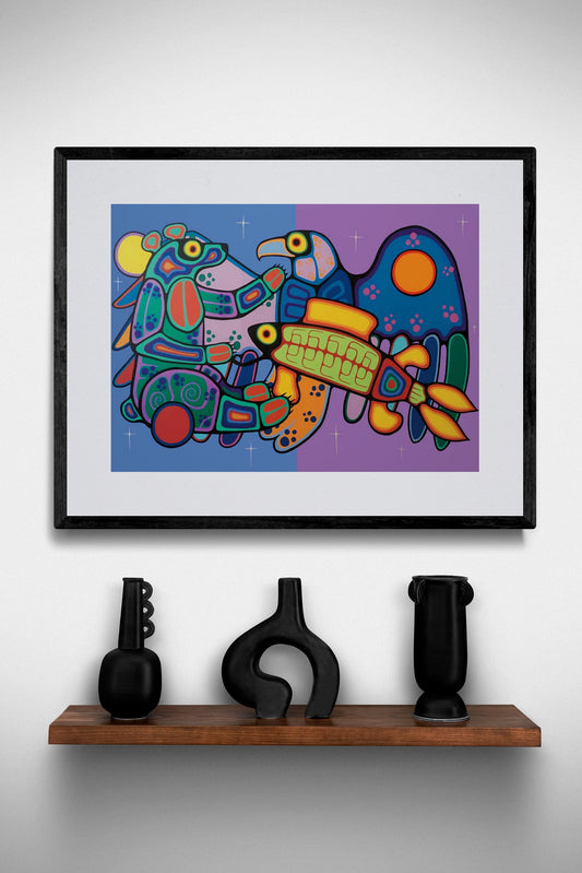 Three Clans Meet Again by Jim Oskineegish Indigenous Art Print, First Nations, Ahnisnabae Culture, Native American Indian Decor