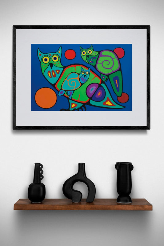 Owl Family by Jim Oskineegish Indigenous Art Print, First Nations, Ahnisnabae Culture, Native American Indian Decor