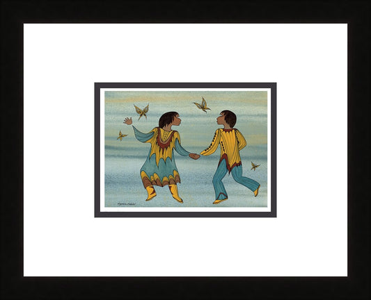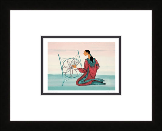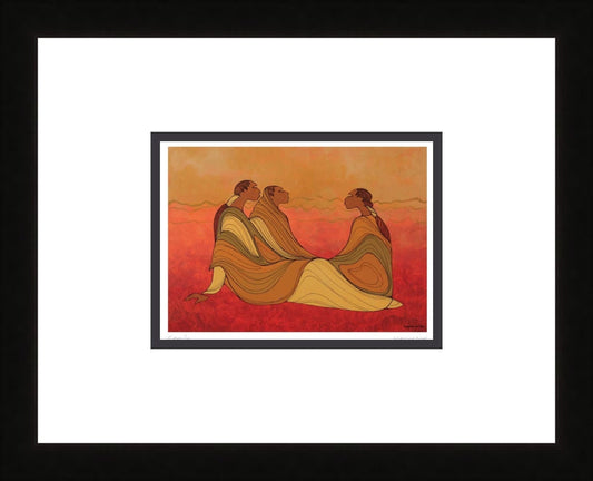 Maxine was born in Manitoba of Santee Oglala Sioux parents. She spent her early childhood on her mother’s reserve but at the age of six she left to attend an Indian residential school. Maxine’s early career as a legal secretary was soon overshadowed by her preoccupation with painting and drawing. She took a course in advanced design where a teacher noticed Maxine’s tendency toward linear expression and encouraged her in the use of shape and line to suggest movement. She learned those lessons well, as evidenced by much of her work today. Since those early days Maxine has mastered the skills of painting and drawing plus the processes of serigraphy, etching and stone lithography. Recently she has turned her talents to the creation of editions in cast paper and limited edition bronze castings.