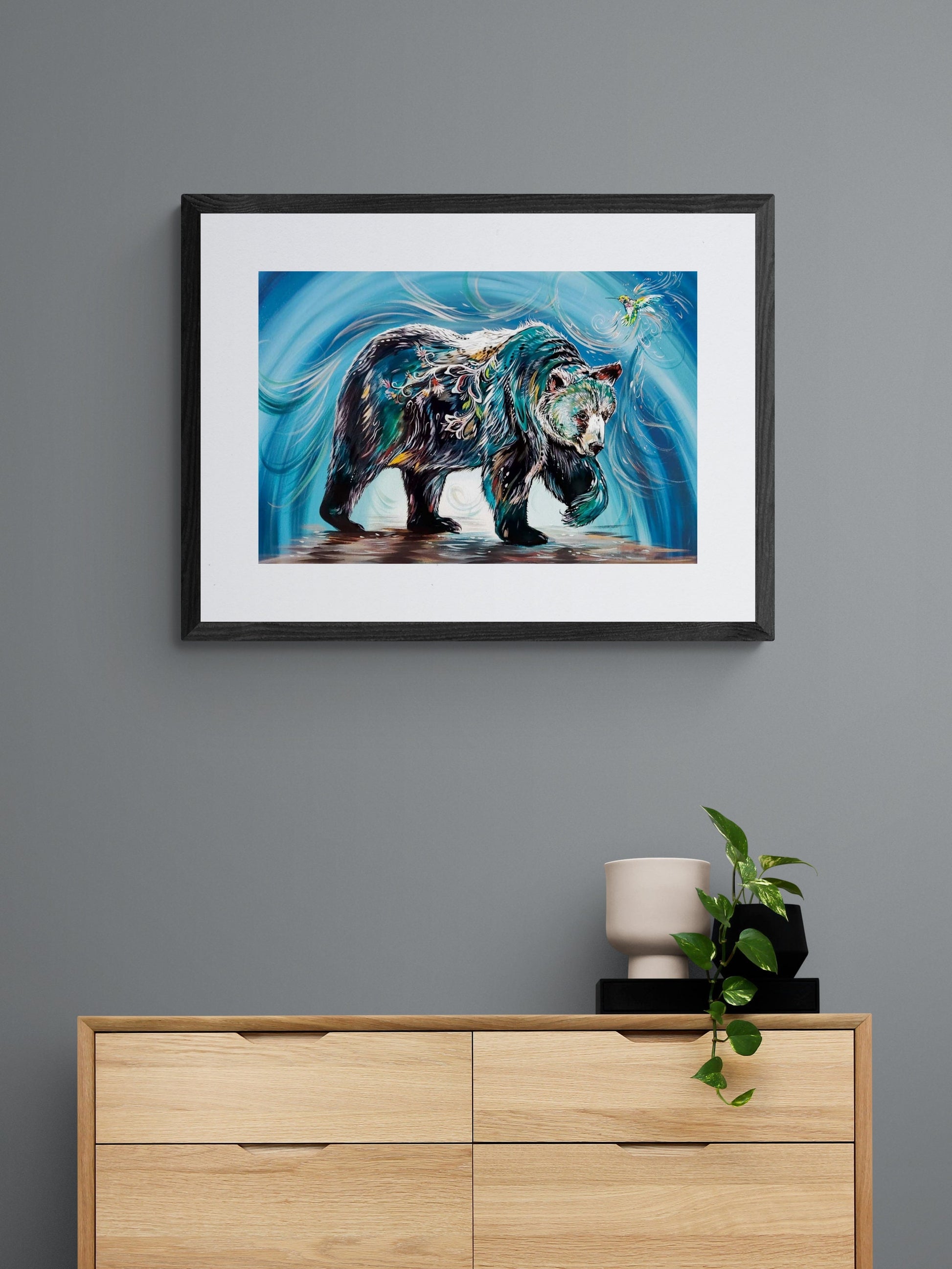 Bear With Hummingbird By Carla Joseph, Indigenous Art Print, First Nations, Native Americans, Cree, Métis, Framed Art