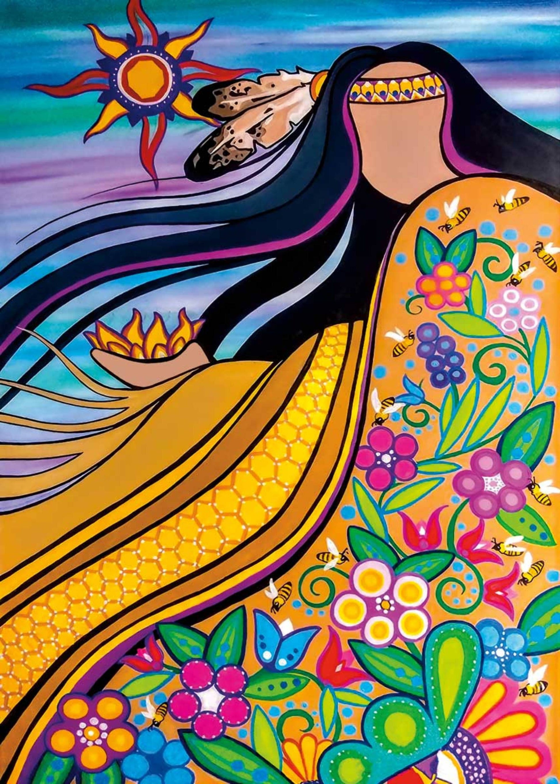 Pamela Cailloux was born in Chibougamau Québec. She is of Métis decent consisting of Huron and Algonquin heritage. Her artwork is heavily influenced by the teachings of the medicine wheel consisting of balance, seasons, elements and harmony. Mother earth is often represented in her works as an energy and spirit that is determined to heal and restore natural order. Pamela has been drawing all her life and the style we see today, began to take shape around 1995.