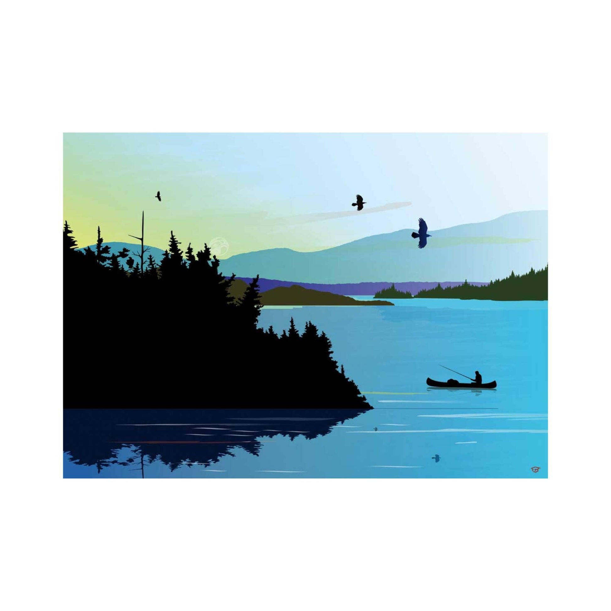 Blue Lake Fishing By Mark Preston, Indigenous Art Print, First Nations, Native Americans, Tlingit, Yukon Territory, Framed Art