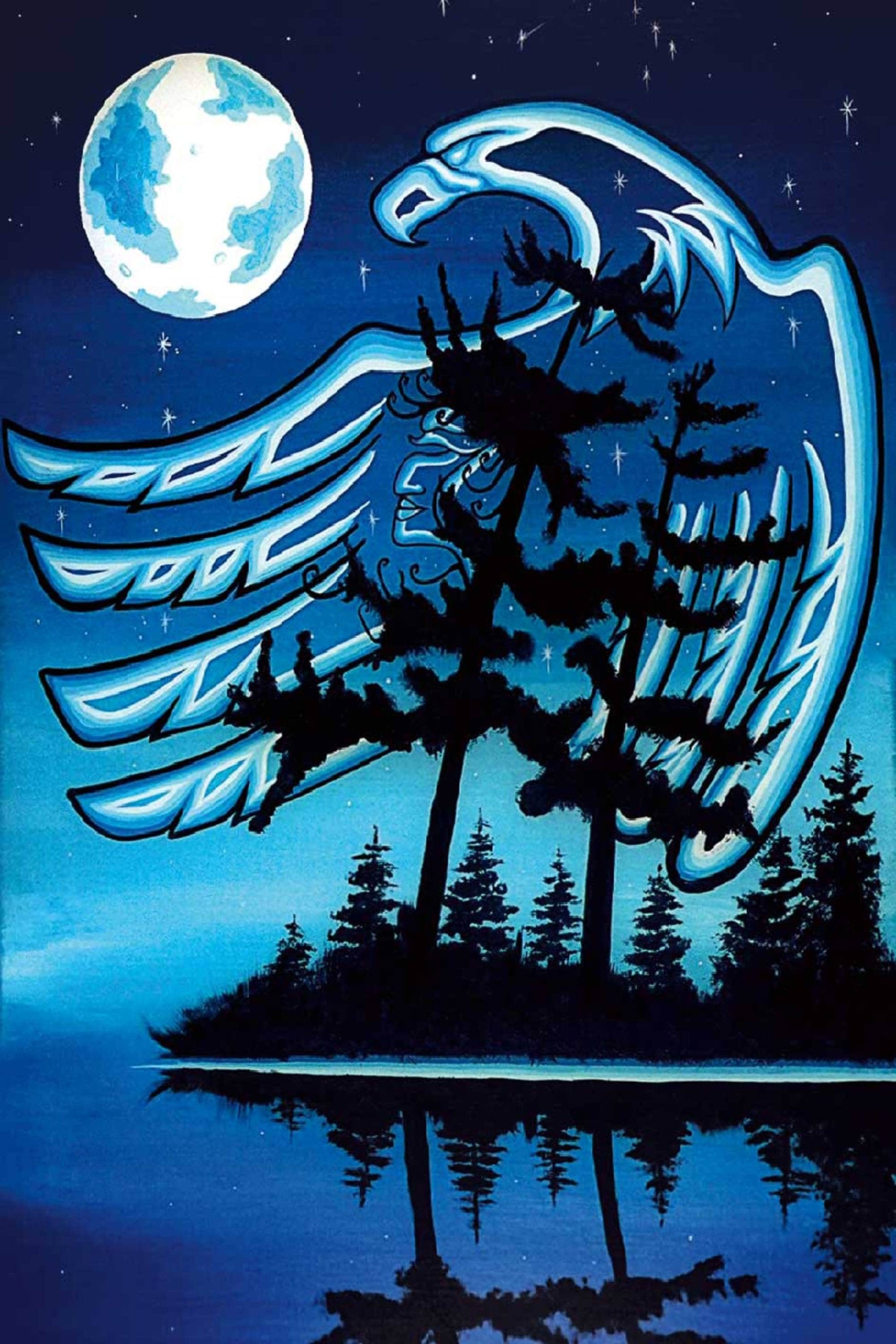 Blue Moon By William Monague, Indigenous Art Print, First Nations, Ojibway, Native Americans Indian Decor, Framed Art