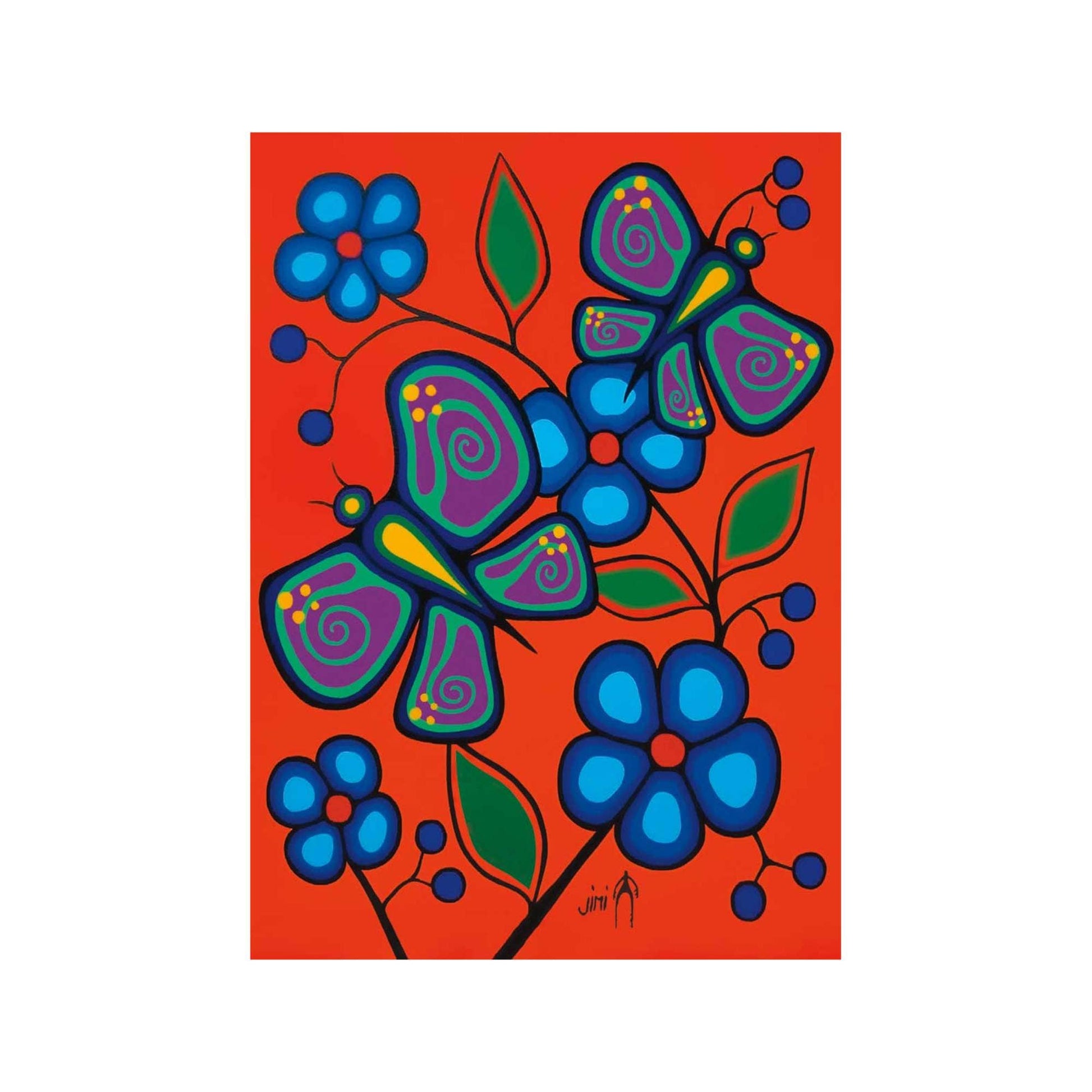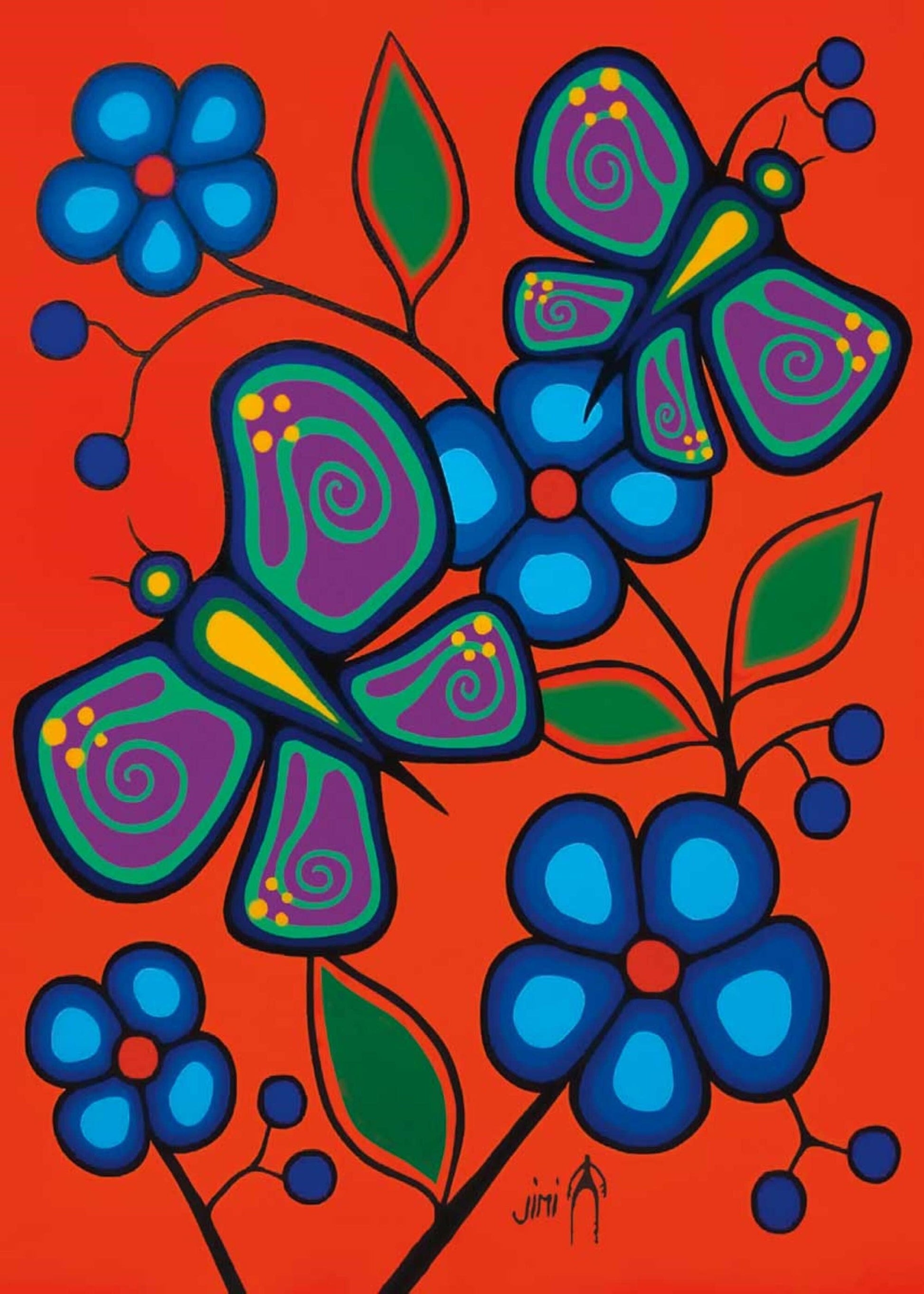 Butterflies And Flowers by Jim Oskineegish Indigenous Art Print, First Nations, Ahnisnabae Culture, Native American Indian Decor