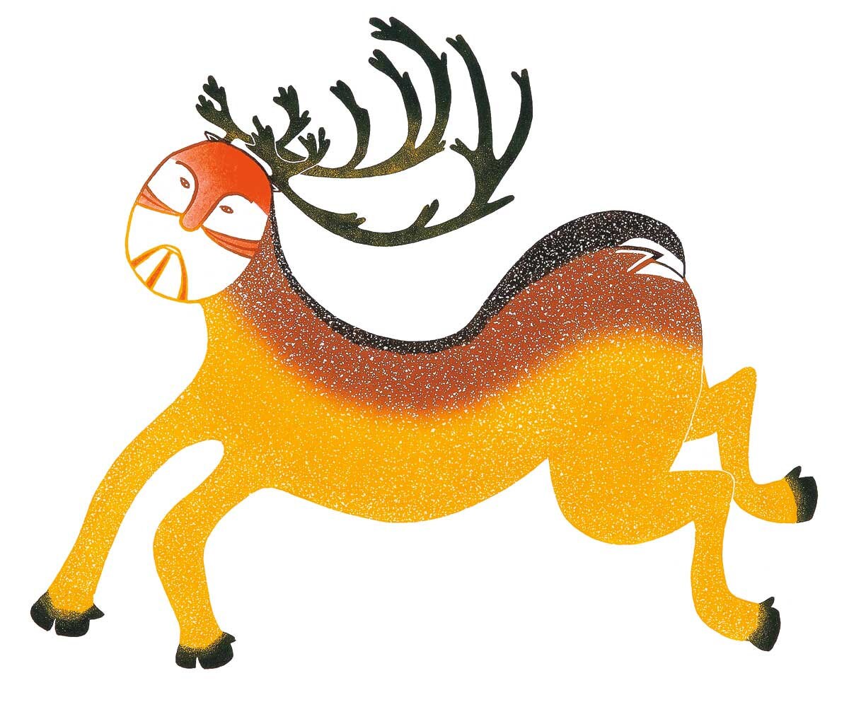 Caribou Spirit by Ningiukulu Teevee, Indigenous Inuit Art Card, Aboriginal Decor, Framed Art Card