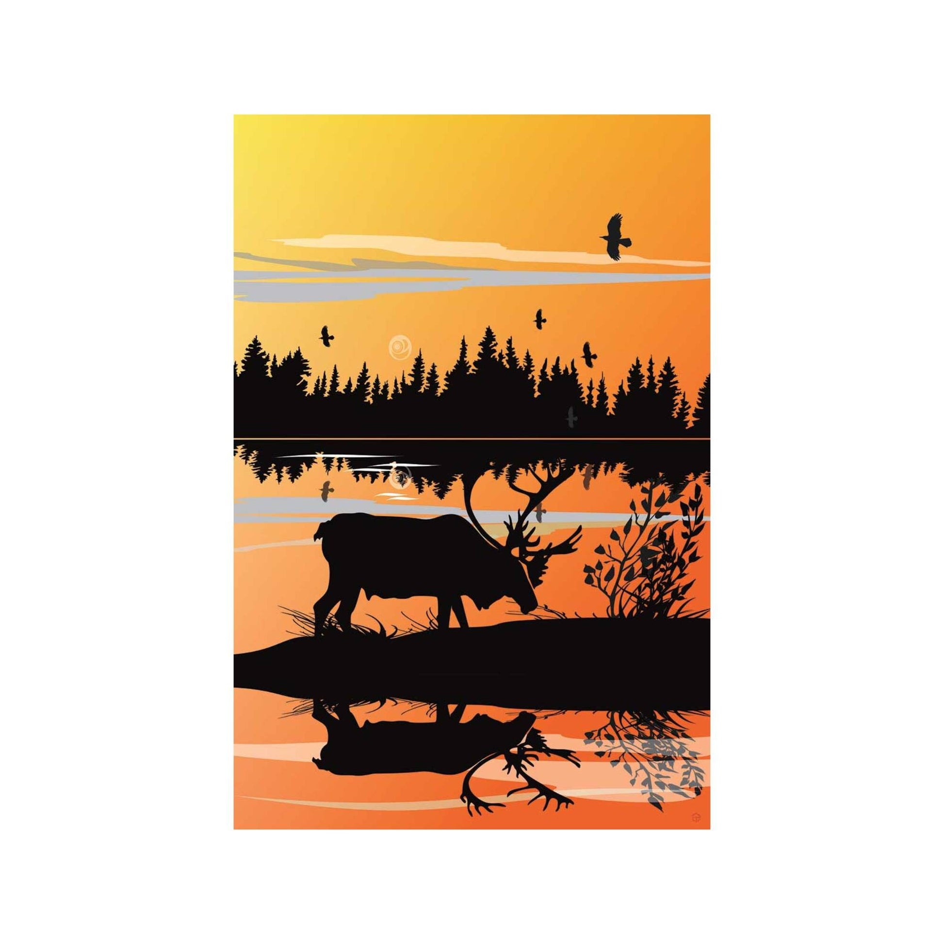 Caribou Sunset By Mark Preston, Indigenous Art Print, First Nations, Native Americans, Tlingit, Yukon Territory, Framed Art