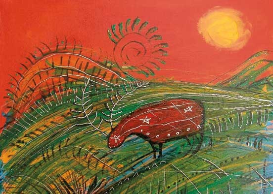 Caribou With Red by Alan Syliboy, Indigenous Art Card, Framed Art Card, Mi’kmaq Artist