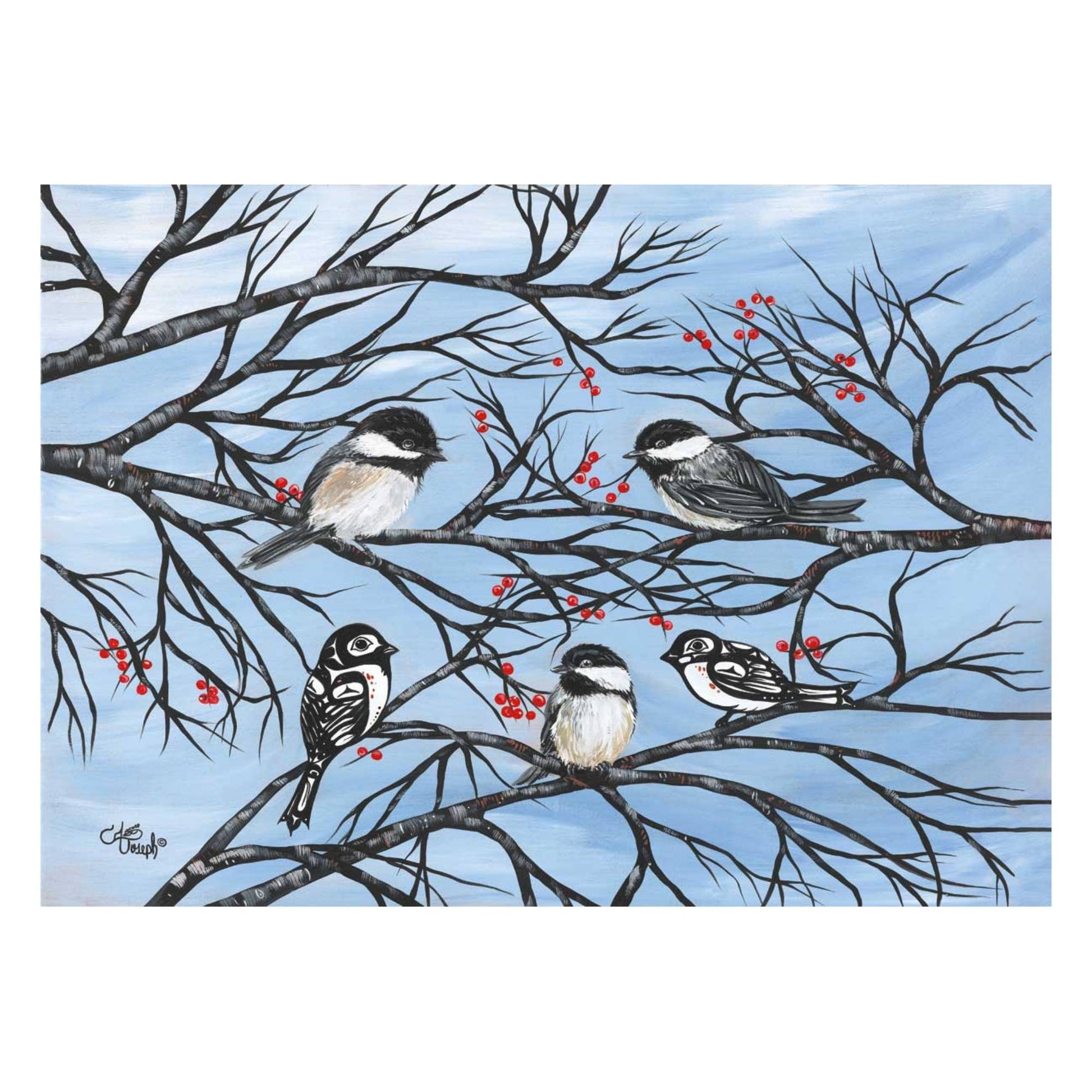 Chickadees By Carla Joseph, Indigenous Art Print, First Nations, Native Americans, Cree, Métis, Framed Art
