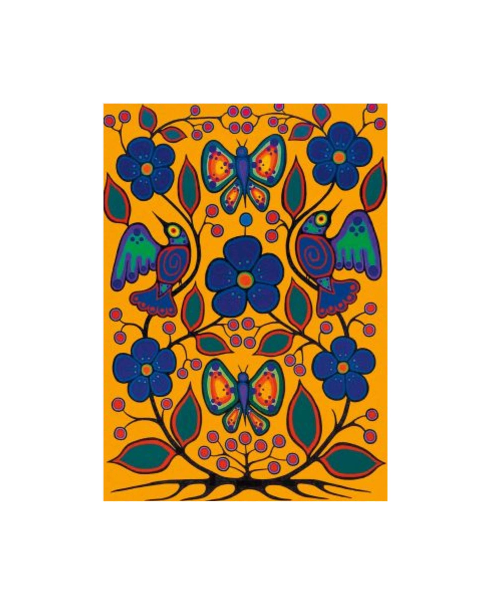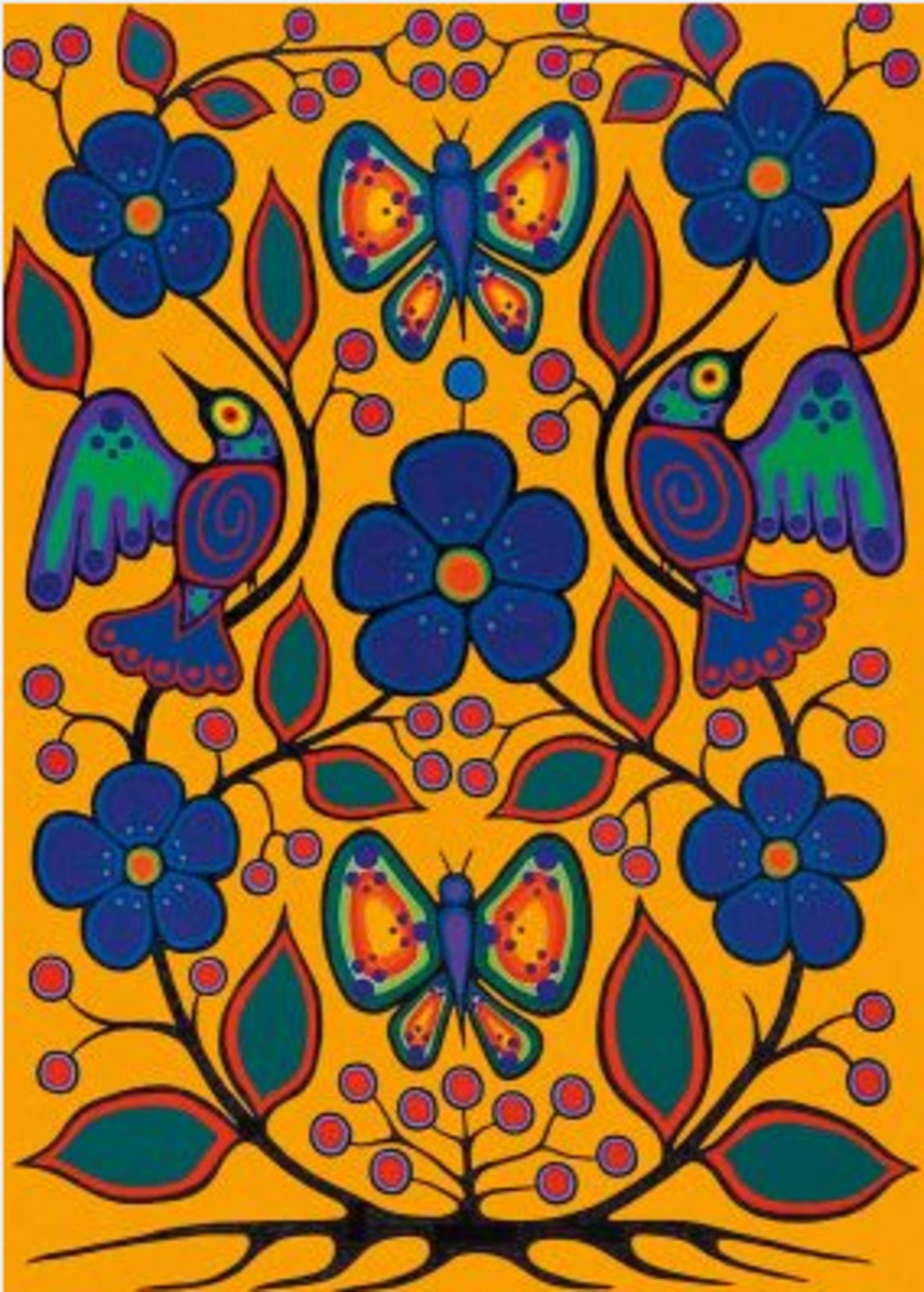 Jim Oskineegish is an Ojibwe artist who is a registered member of the Eabametoong First Nation which is located in northwestern Ontario, Canada. Jim paints in the Shamanistic Woodland Style using bold lines and bright colors. He loves to paint legends and stories of his people and hopes that his art can bridge a universal understanding of love, faith, and unity. “I want to promote positive Ahnisnabae culture to the world.”