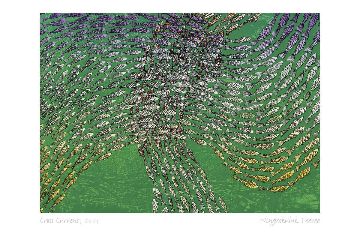 Cross Current, 2005 by Ningiukulu Teevee, Indigenous Inuit Art Card, Aboriginal Decor, Framed Art Card