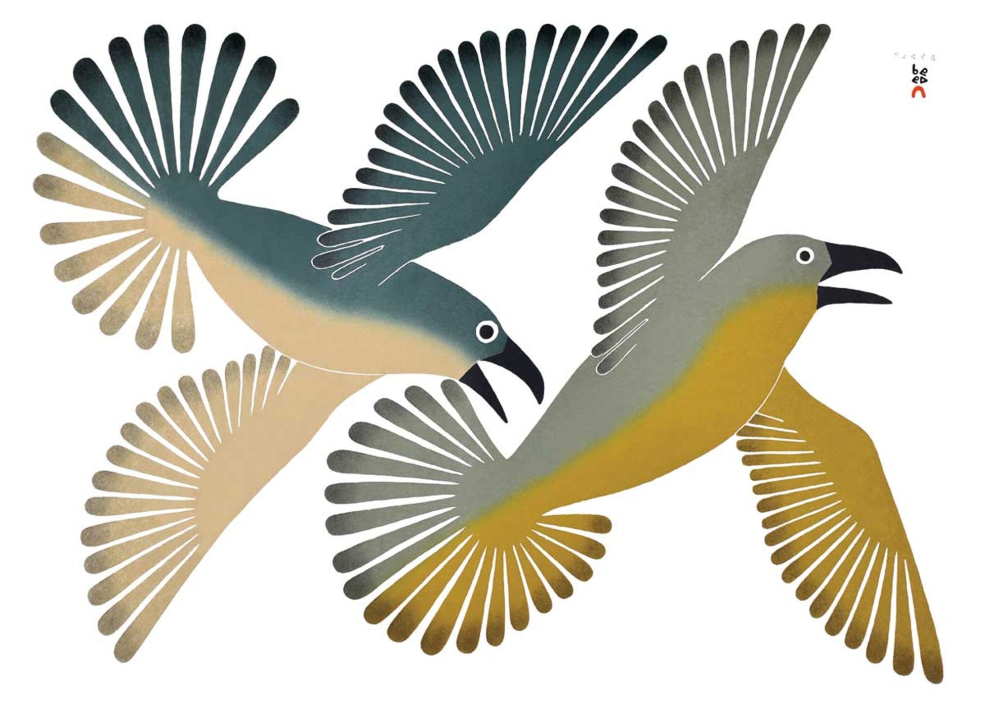 Kenojuak first began experimenting with drawing and stone carving in the late 1950s. Her early work appeared in the Cape Dorset Annual Graphics Collections, launching a career that would include numerous national and international commissions, special projects and exhibitions. Her life and art have been the subject of a film produced by the National Film Board of Canada, and a book entitled “Graphic Arts of the Inuit: Kenojuak”, published in 1981.