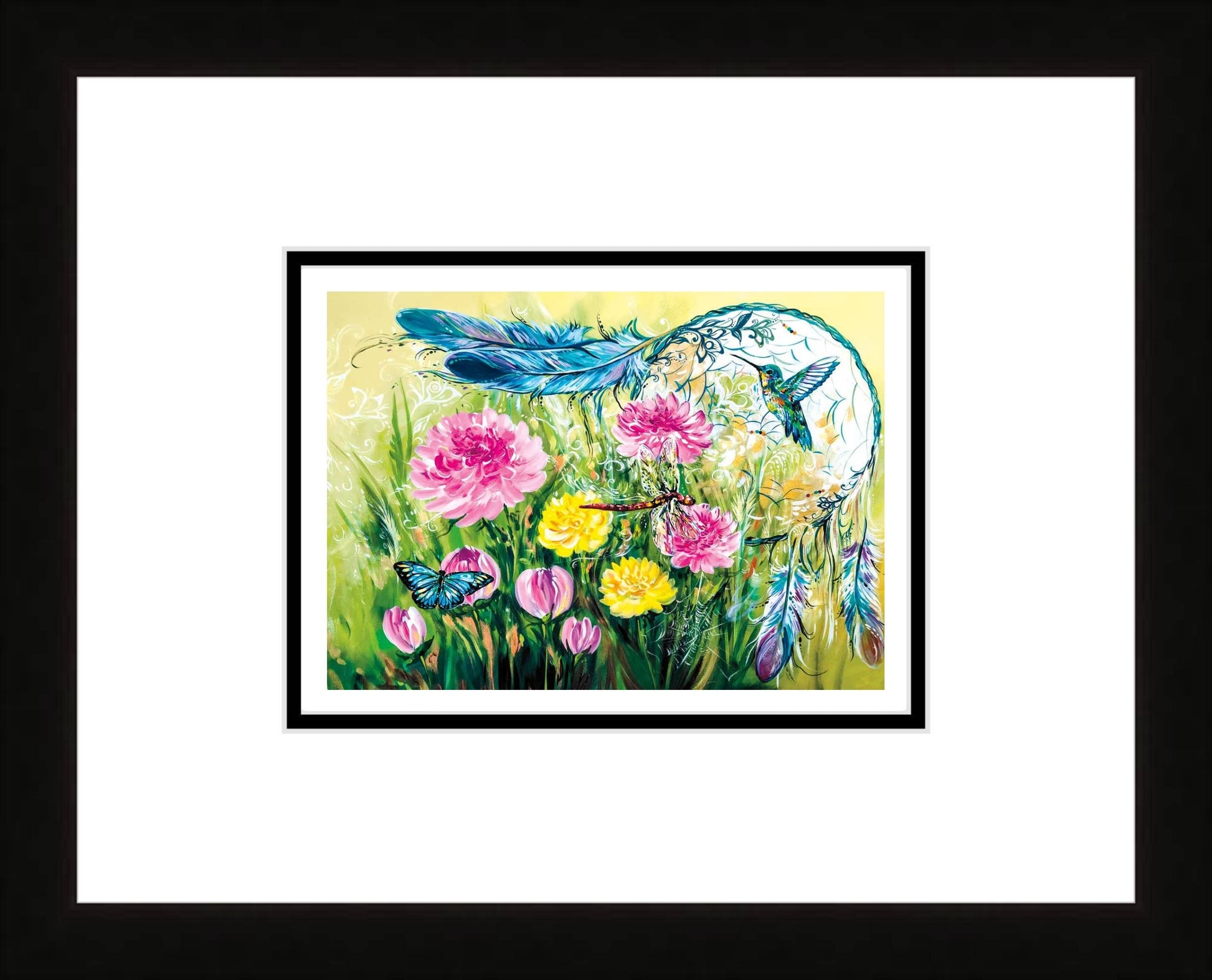 Framed Art Card - Outside Finished Size: 13 X 16, Double Mat, 1.25” Black Wood Frame, Finished Backing with Wire Hanger and Artist's bio on the back.