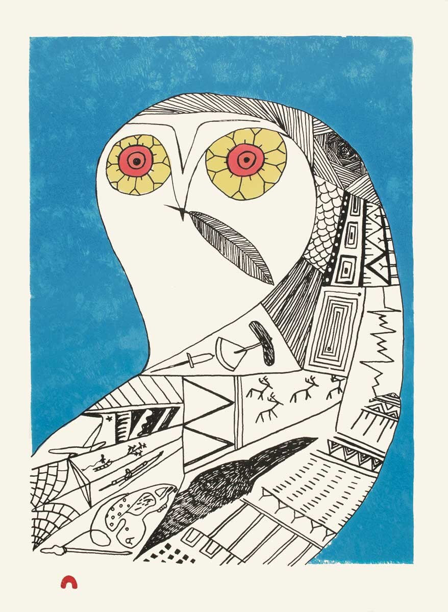 Eclectic Owl by Ningiukulu Teevee,, Indigenous Art Card, Inuit Framed Art Card