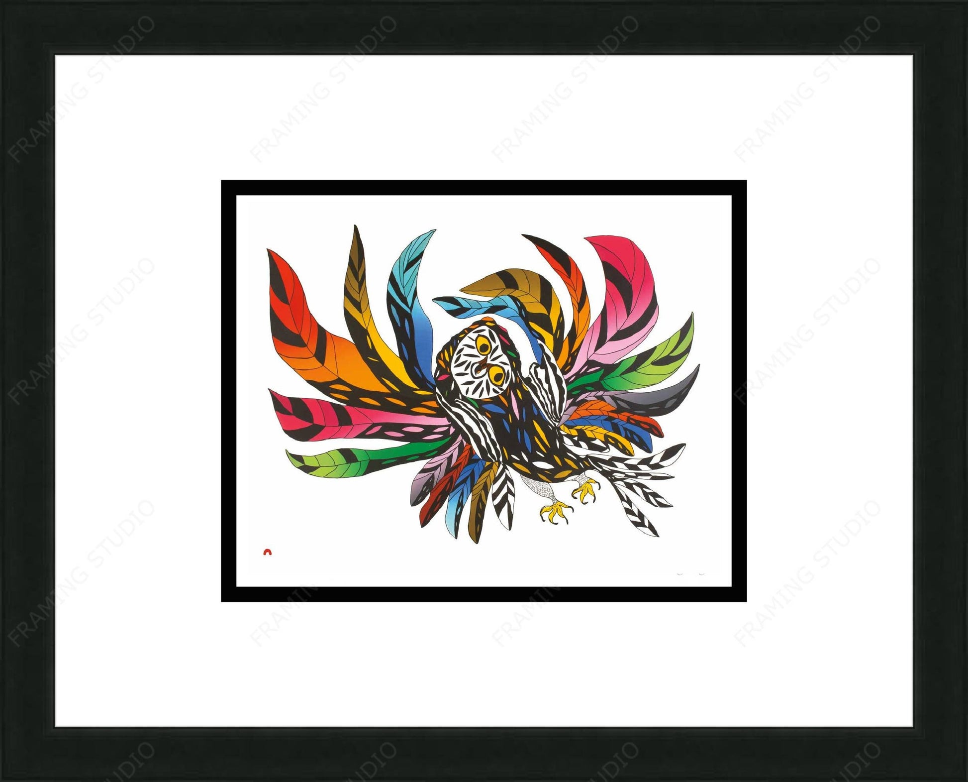 Festive Owl by Ooloosie Saila, Inuit Art Card, Framed Art Card