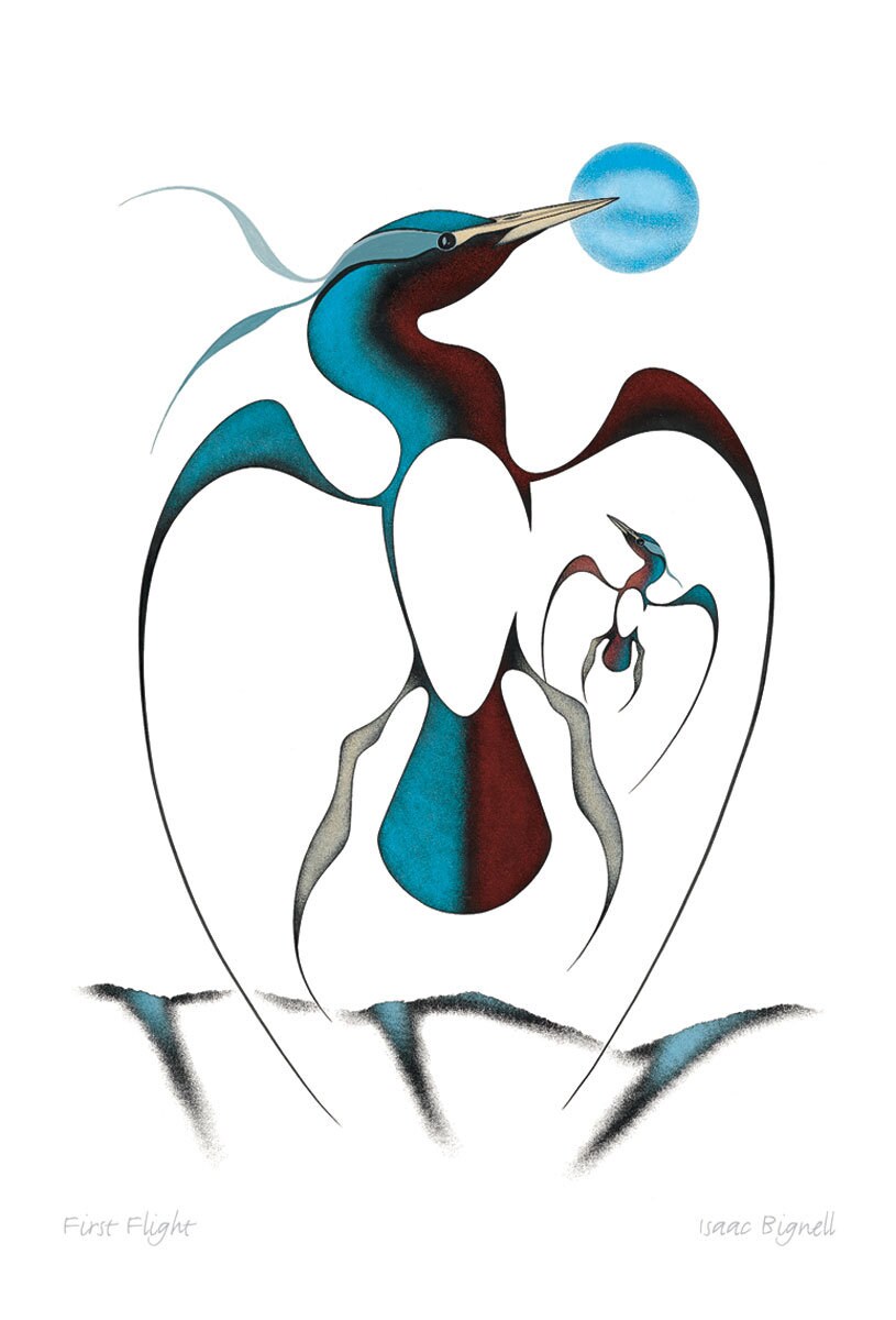 First Flight by Isaac Bignell, Indigenous Art Card, Native Decor, Framed Art Card