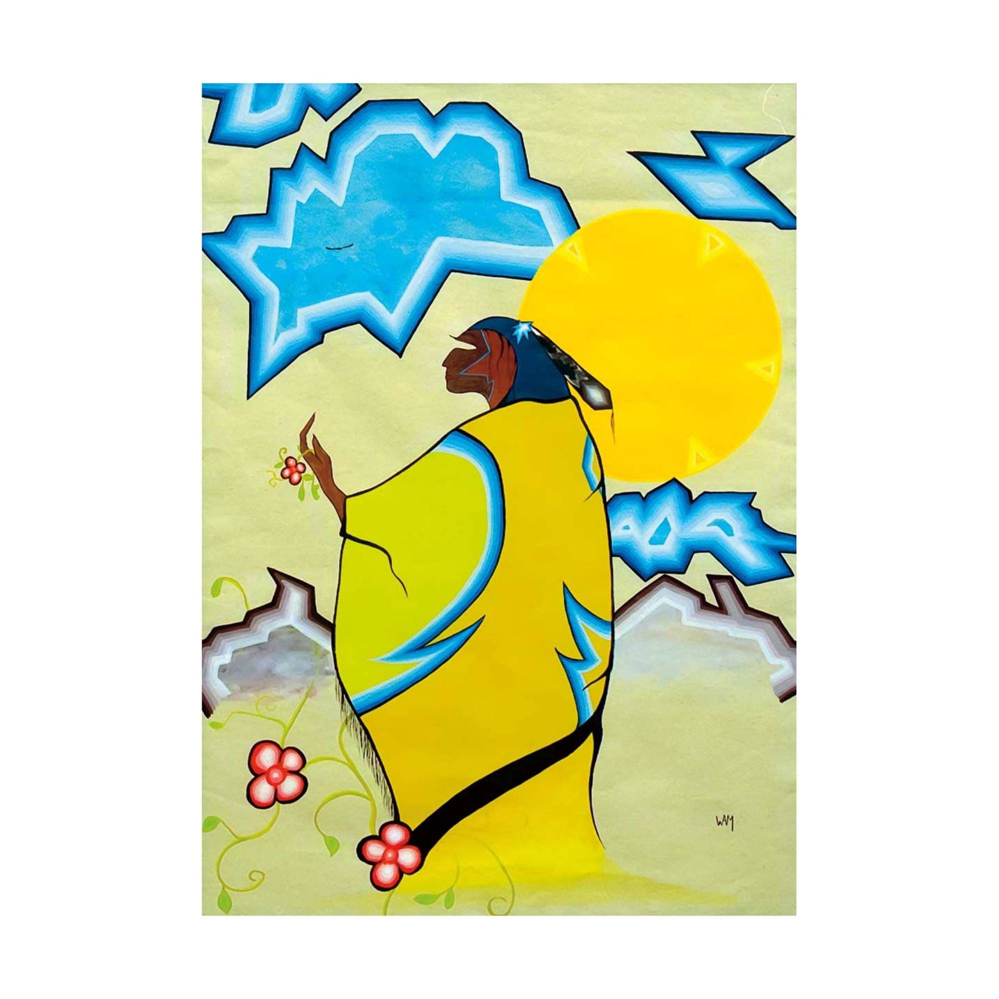 The self-taught Beausoleil First Nation artist, William Anthony Monague, grew up on an isolated island with no access to formal education or training in the arts. Monague – “Abwaudung” (The Visionary or Dreamer) discovered inspiration in the traditional teachings of Mother Earth, Spirit World and in the beauty of nature and in the Georgian Bay shores that surrounded him. Initially he was using the woodland style but soon developed his own more contemporary style of art. During the 1970’s and 80’s Monague followed the Pow Wow circuit in a van with his family down to Mexico. His work ended up in various museums and galleries along the way. Monague donates his time and artwork to many worthwhile causes, while helping others. “I feel my art speaks to my culture. I have made a name for myself with my work and reputation but it has taken a long time.” After 45 years of painting, he continues his artistic lifelong journey with his family.