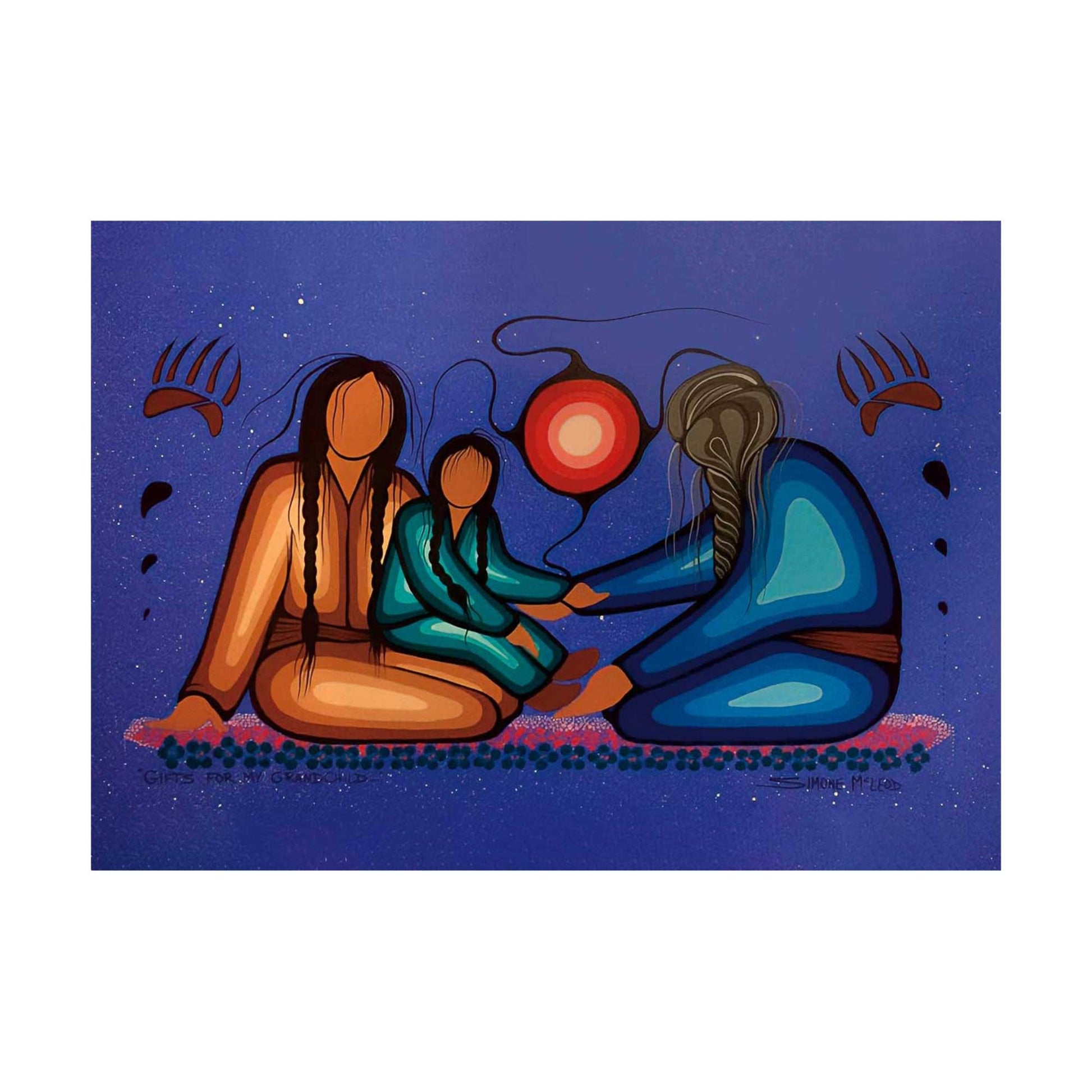 Gifts for My Grandchild By Simone Mcleod , Indigenous Art Print, First Nations, Native American Indian Decor