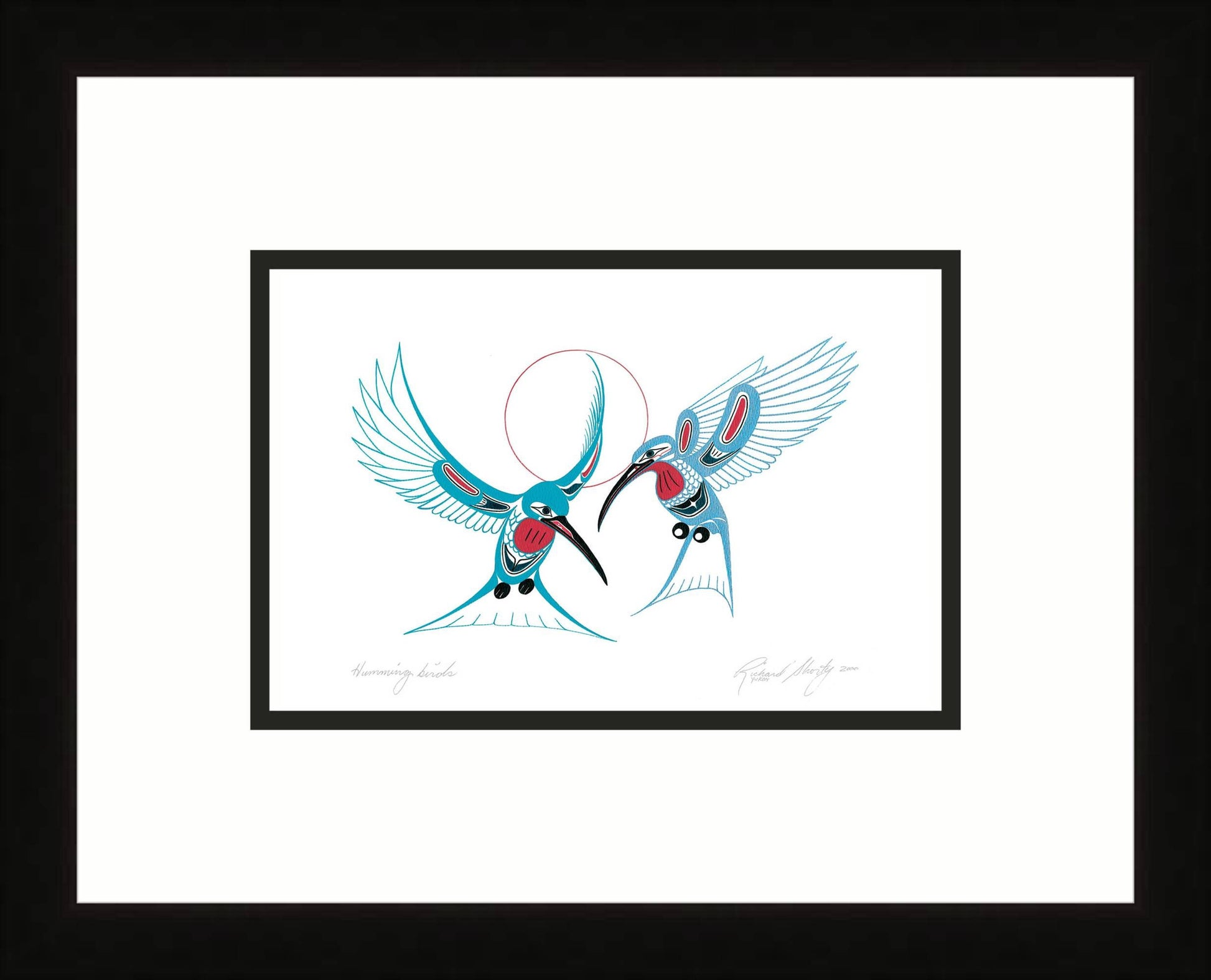 Hummingbirds by Richard Shorty, Indigenous Art Card, Hummingbird Framed Art Card