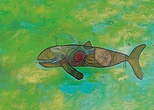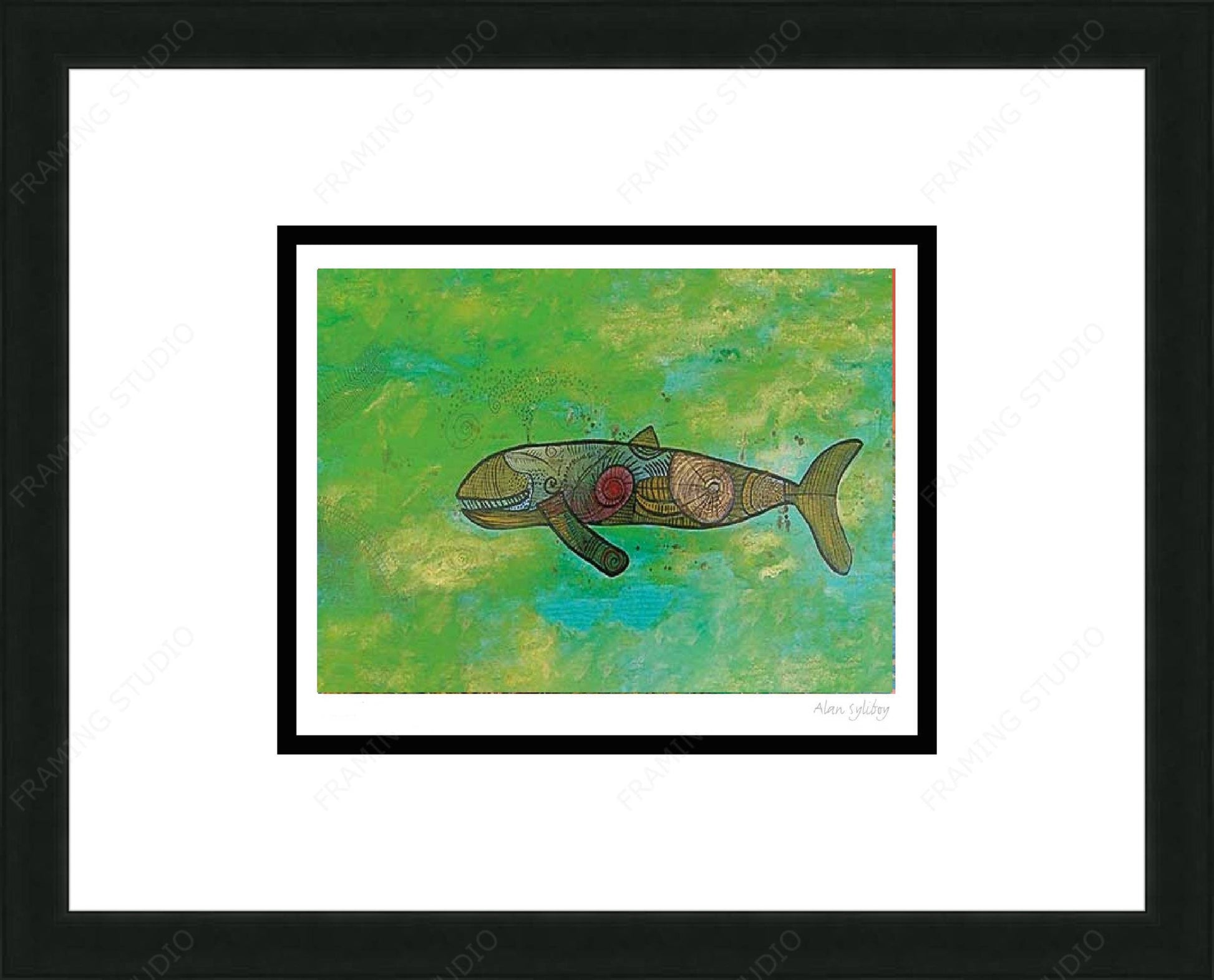 Humpback Whale in Green Water by Alan Syliboy, Indigenous Art Card, Framed Art Card, Mi’kmaq Artist