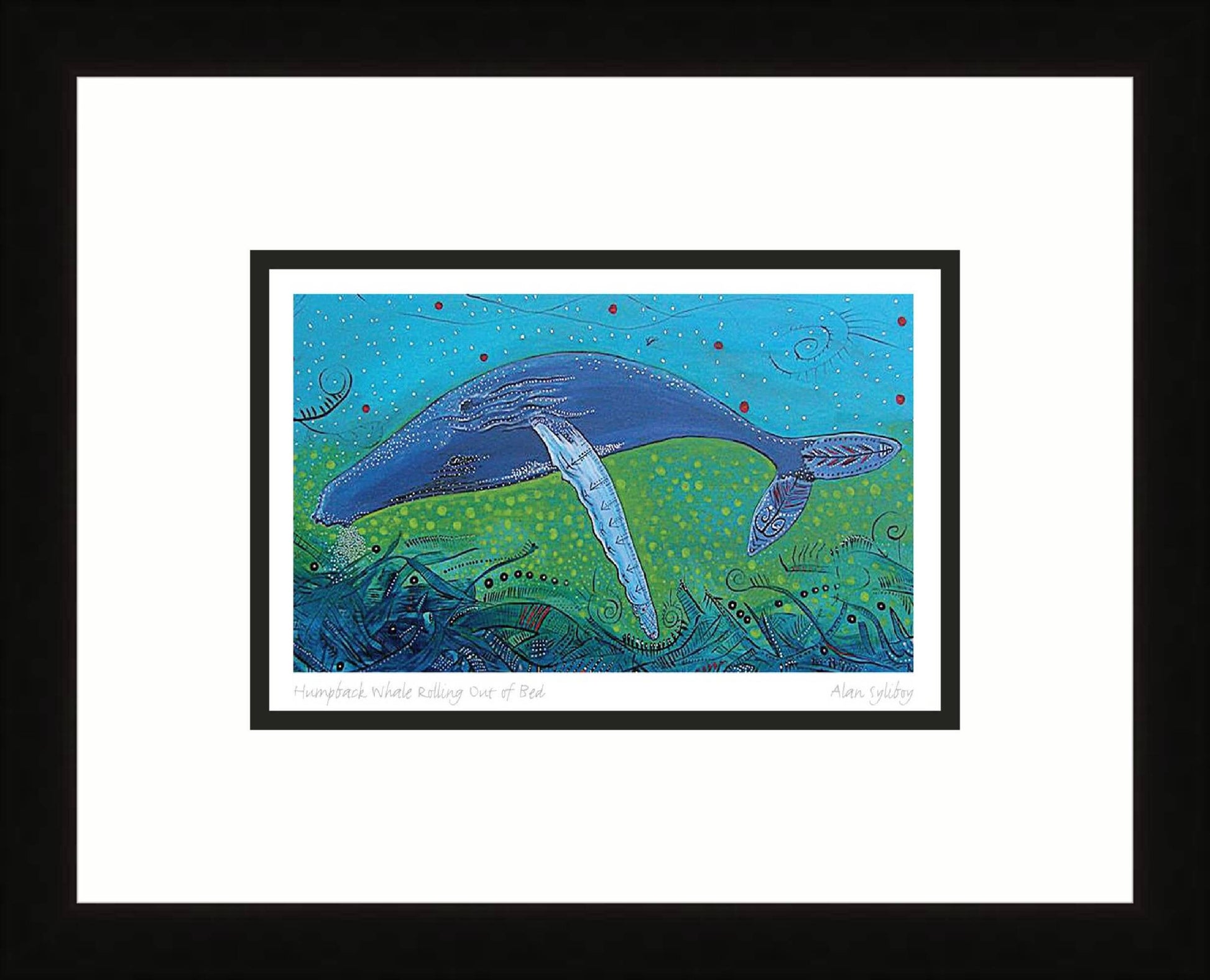 Humpback Whale Rolling Out Of Bed by Alan Syliboy, Indigenous Art Card, Framed Art Card, Mi’kmaq Artist