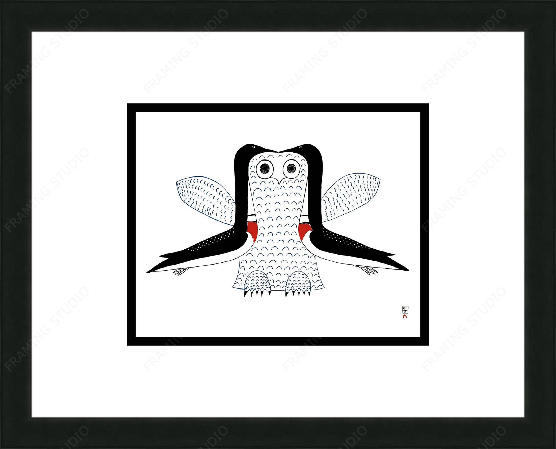 Imaginary Owl by Ohotaq Mikkigak, Inuit Art Card, Framed Art Card